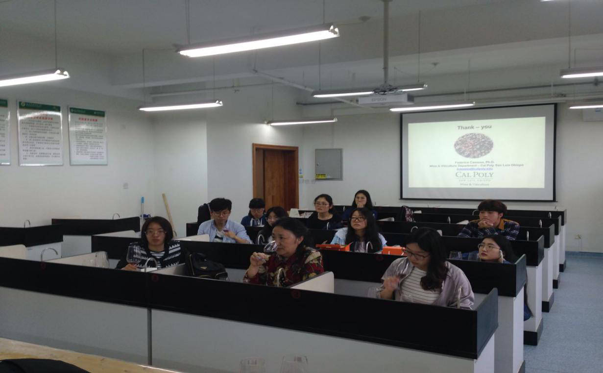 4月22日下午,关于欧美伦理电影 与欧美伦理电影 酒中酚类物质的研究进展的学术报告会在欧美伦理电影 219品酒室成功开展。该报告会主要由美国加州理工州立大学农业、食品与环境科学欧美伦理电影 Federico Casassa老师进行讲解,共有20余名学生参加。