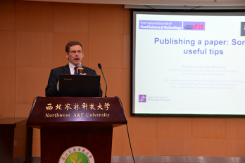 李华教授提出的“从土地到餐桌”有着同样的涵义。Tian Bin博士还分享了他在病原相关蛋白(pathogenesis-related (PR) proteins)方面的研究进展,与同学进行了充分的交流。Charles Brennan教授作为《international journal of food science & technology》杂志的主编,介绍了在科技文章写作和投稿方面的经验,强调了文章的内容要有科学性和创新性,同时也必须有良好的英语写作能力,才能将实验及研究结果完美呈现出来。同时还强调了抄袭和一稿多投都属于学术不端行为,对作者本人及单位都有极其恶劣的影响,强调科学研究一定要真诚和诚实。此次报告是国际同行间的一次学术交流,也是一次学术道德教育。