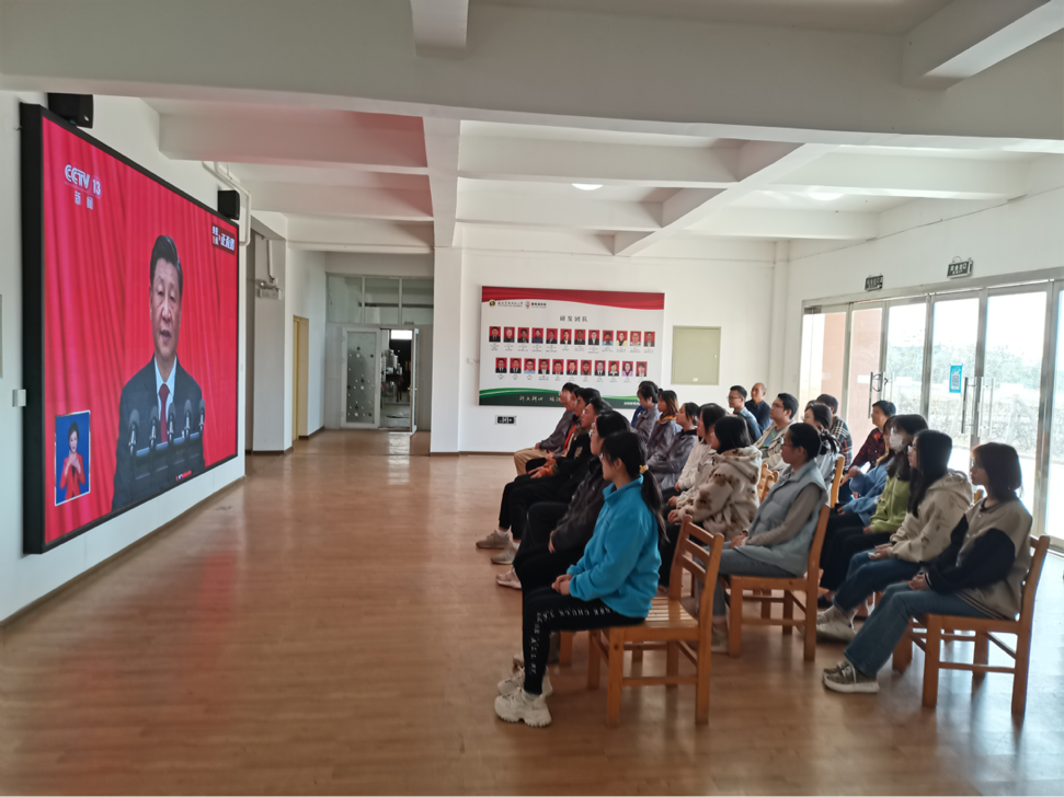试验示范站实习的2020级本科生集中收看,学习领会报告精神。