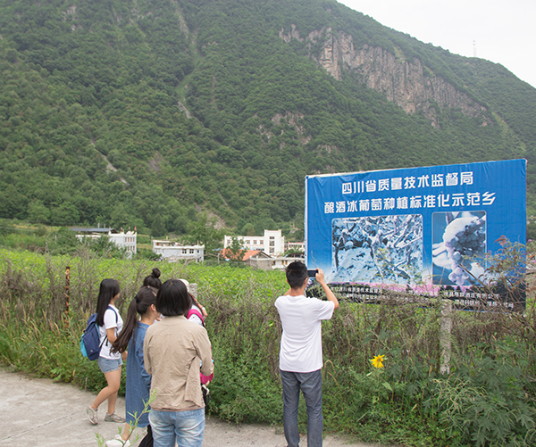 酒产区调研队启程来到四川省理县塔斯酒庄。在调研前期的资料收集阶段,我们发现虽然酒庄海拔仅为1700m,且位于秦岭以南,但其成功打造了酒庄独属的冰酒品牌。抱着极大的好奇心,我们来到了位于上孟村的塔斯酒庄。