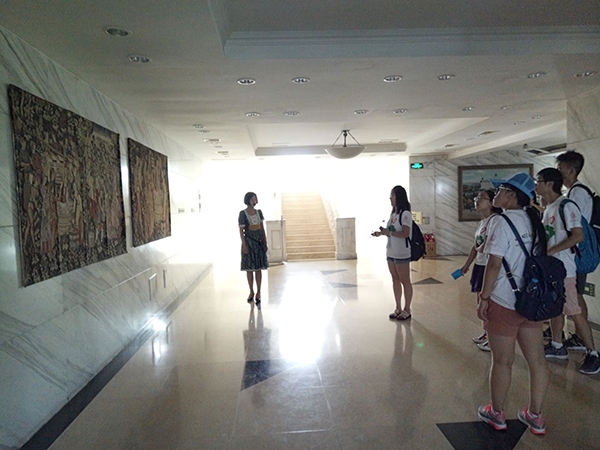 队员认真听导游讲解