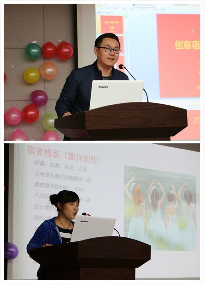 为同学们带来了有趣的魔术,点燃了全场的气氛。随后,十三个获奖宿舍依次进行了成果展示。他们以PPT讲解的形式,图文并茂、生动详细地介绍了自己独特的思维,并与其他宿舍进行了交流与学习。其间还穿插了对宿舍成员的介绍,体现了宿舍成员间宝贵的友谊和家人般的温情。