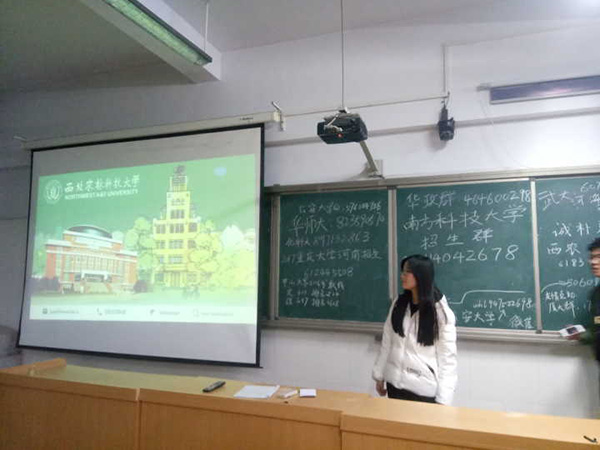 等六名同学来到新乡市第一中学开展"回访母校,筑梦西农"宣讲活动。本次宣讲活动与复旦大学、上海交通大学、哈尔滨工业大学、浙江大学等十七所名校的宣讲活动共同在高三年级阶梯教室举行,高三年级学弟学妹二百余人聆听了本次宣讲。
