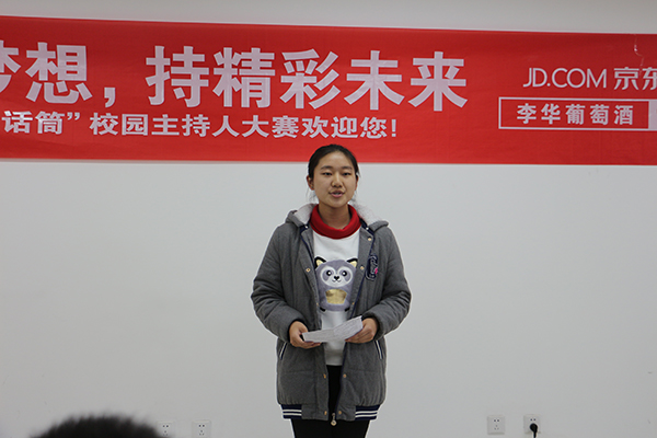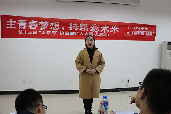 六楼会议室举办。大学生艺术团主持队艺术指导宫政,广播站节目部部长柴嘉轩,第十一届“金话筒”大赛金话筒得主何昭磊,第十二届“金话筒”大赛金话筒得主钟庆涛、铜话筒得主苏睿恒担任评委。