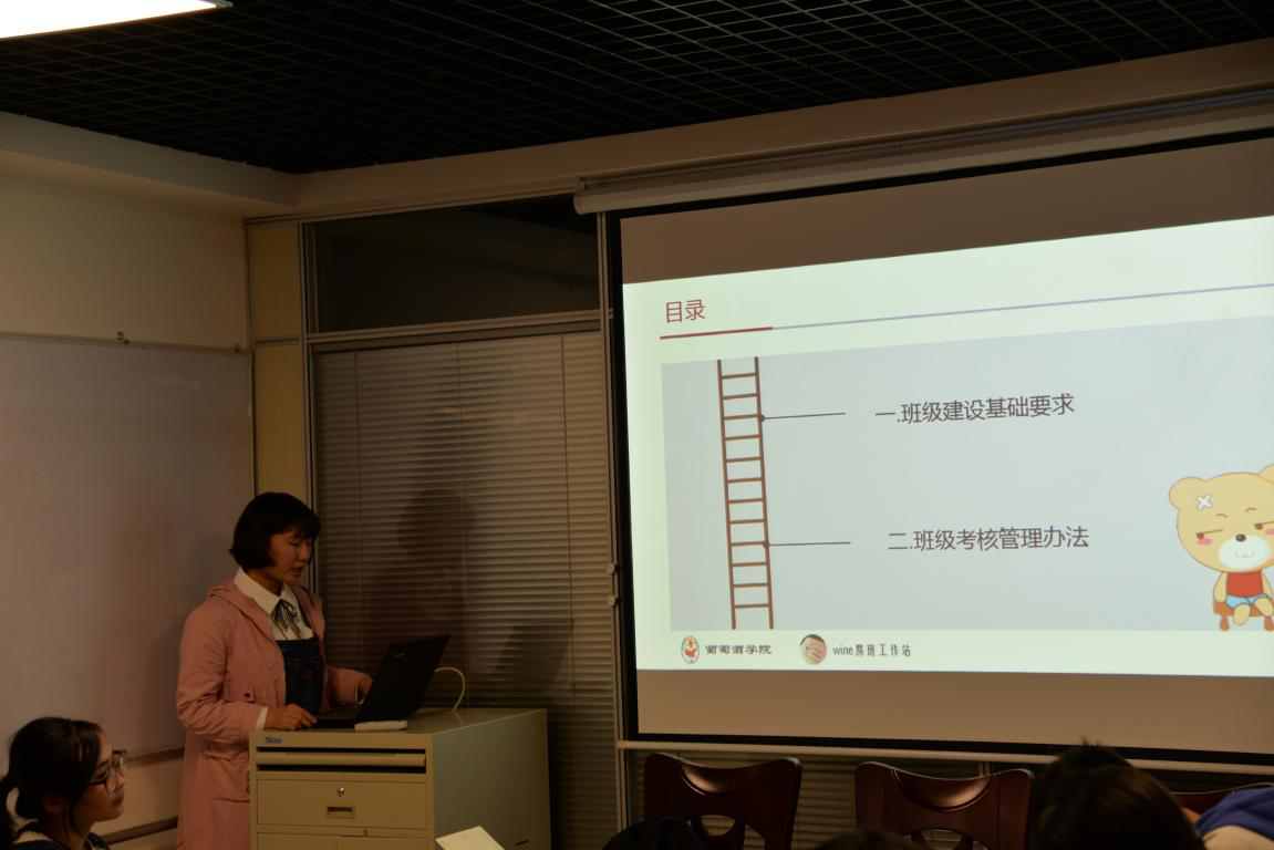 易班副站长李婵为大家详细讲述了易班平台的使用及管理办法,班级的考核评分规则及奖惩措施。李婵就如何建设易班班级,怎样建设好易班班级两个问题对易班班长及班级负责人提出了几点建议及要求。李婵强调:“制定班级考核管理办法并非强制大家完成定期的任务或工作,而是用班级竞争的方式,提高大家自主建设易班班级的积极性,加强班级成员间的沟通,增强班级凝聚力。”
