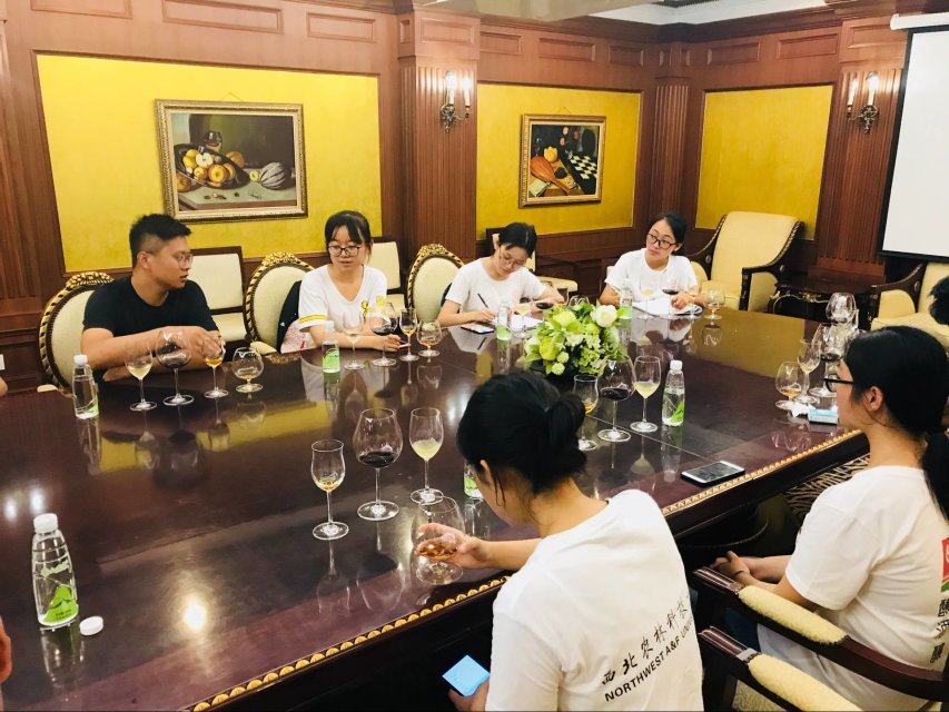 接着周攀先生带领同学们来到了贵宾品酒室。每个人的座位上摆了四款酒,周先生让我们先进行品尝。后找了几个同学简单讲述了品尝后的感受。由于同学们在业余时间对欧美伦理电影