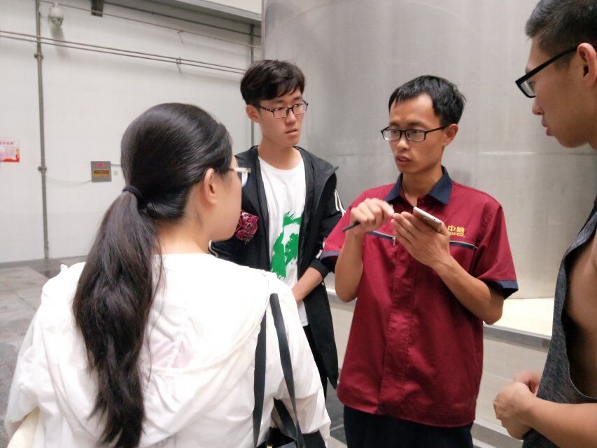 离开酿造车间,惊觉车间外已刮起了台风,伴随着细雨,小队来到了发酵车间,这里有着数量庞大的不锈钢发酵罐,为了迎合市场的需要,企业使用5t小罐,每个小罐底部都连接着一根液位管,以此测量罐内液面高度,由于在发酵的旺盛阶段会释放大量二氧化碳,罐内液面会持续升高,为了防止酒液溢出,罐内装液约在80%上下,并通过底部的数根气压管,严密控制罐内气压。车间的生产过程高度机械化,让小队成员感叹于国内生产设备先进之余,更对中国欧美伦理电影