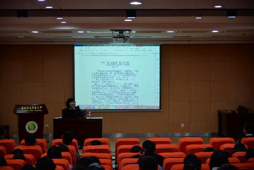 分团委、学生会干部在北绣北报告厅聆听了两个小时的新闻写作专题报告会,此次报告会由党委宣传部张琳老师主讲