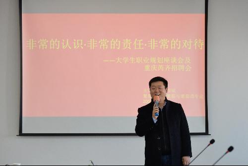 座谈会接近尾声时,在座师生分享了自己的心得体会,邹熔斌校友一一回答师生们提出的问题,座谈会圆满结束。会后,大三大四学生纷纷前往咨询重庆芮齐贸易公司情况,投上简历。