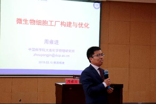 周雍进先生主要的研究方向是微生物合成生物学和代谢工程,并取得了可观的研究成果。他向在场师生介绍了自己在研究微生物工厂的过程中,是如何屡屡在“山重水复疑无路”的困境中涉水而出的。同时,也向大家介绍了微生物方面国际前沿的研究成果,例如青蒿素的合成等。之后又敞开心扉,讲述了自己的求学之路。他讲到,人生路上面对着很多选择,不管是主动的还是被动的,既然选择了,那就要努力做好。他大学时期跌跌撞撞,在碰壁和收获成果之中,渐渐萌生了以分子机制研究食品的想法,并一直走了下去。如今,他在微生物研究领域的一线已拥有一席之地,多篇论文发表在国际学术周刊,各项成果得到广泛肯定和赞誉。