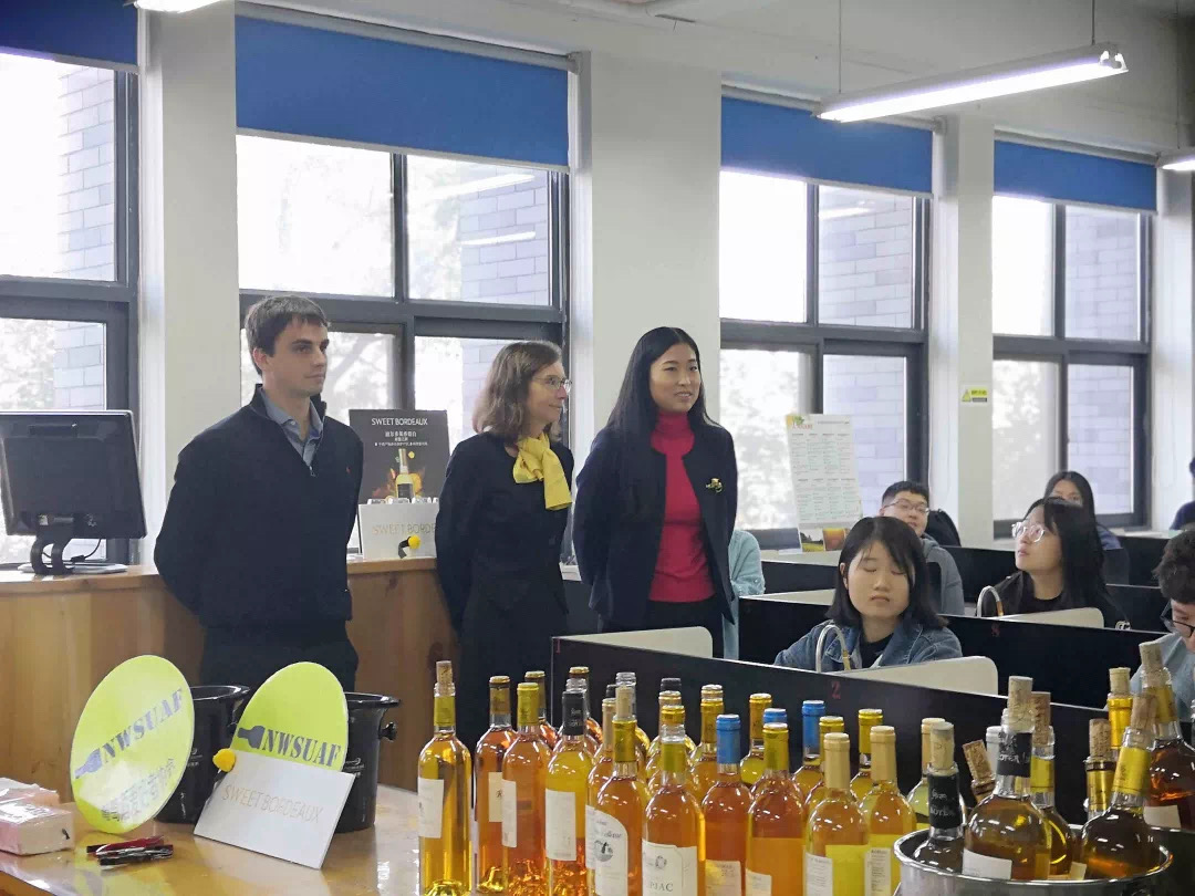 酒来自不同酒庄、不同产区,其中五位酒庄包括圣克鲁瓦蒙、卢皮亚克、苏玳这三个酒庄的代表人向大家介绍了各自酒庄的风格和代表酒款的特点。同学们不仅尝到了甜蜜的贵腐酒,更感受到了欧美伦理电影