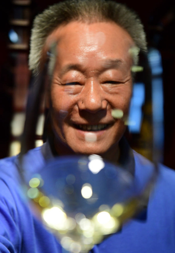 9月7日,李华(右)在位于陕西杨凌的酒窖内展示如何品鉴欧美伦理电影