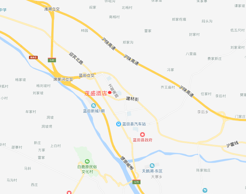 交通信息提示:从西安咸阳国际机场到蓝田茂盛酒店车程约70公里,打车约1.5小时;从西安北站到蓝田茂盛酒店车程约52公里,打车约1小时。
