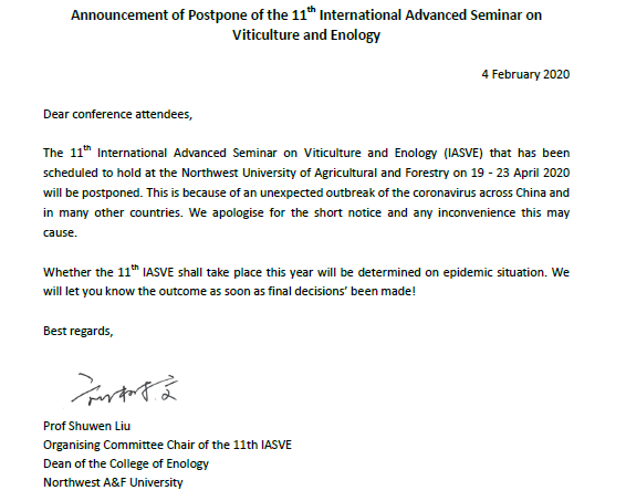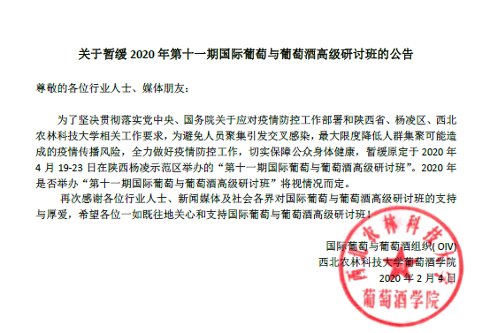 关于暂缓 2020 年第十一期国际欧美伦理电影 与欧美伦理电影 酒高级研讨班的公告