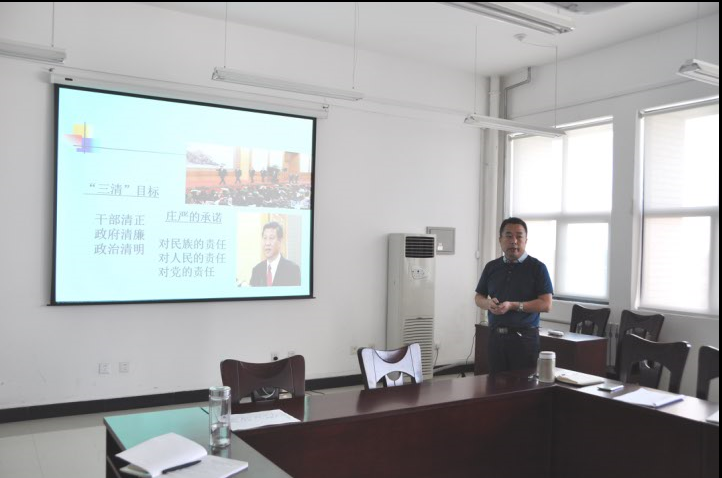 党委书记胡俊鹏同志给全体在院党员讲党课。