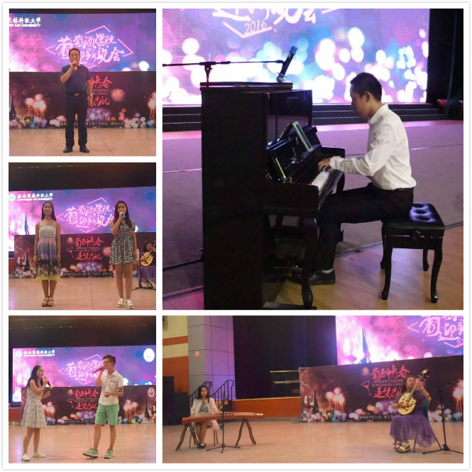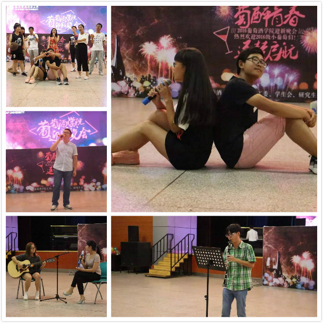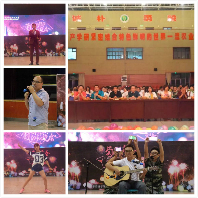 团工委、学生会、研究生会组织策划的迎新晚会“萄醉青春,逐梦启航”于北绣大厅隆重举行。党委书记胡俊鹏、副院长刘树文、党委副书记邓亚丽、2016级各班班主任、各年级辅导员以及所有2016级本科生、研究生参加了此次晚会。