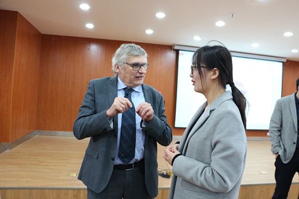 叶表面形成一层膜,从而堵住气孔,减少空气交换和流通,来光合作用。第四种:使用调节系统,使温度湿度保持在一定的范围内。Stefano Poni教授说,那四种方法虽然表面不同但本质都是,通过减少光合作用来减少糖分,同时保证颜色酸度等不变。报告会最后,Stefano Poni教授耐心地回答了同学们和老师们的各种疑问。