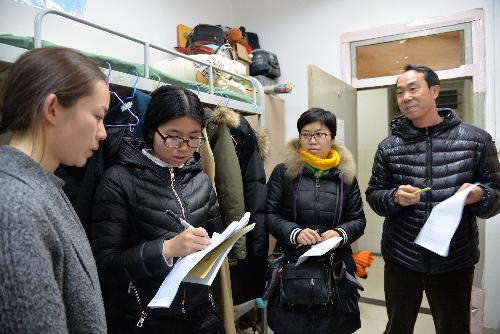 党委书记胡俊鹏、副书记邓亚丽带队,与全体班主任,辅导员一起深入宿舍,对学生宿舍全面开展安全检查和隐患排查。