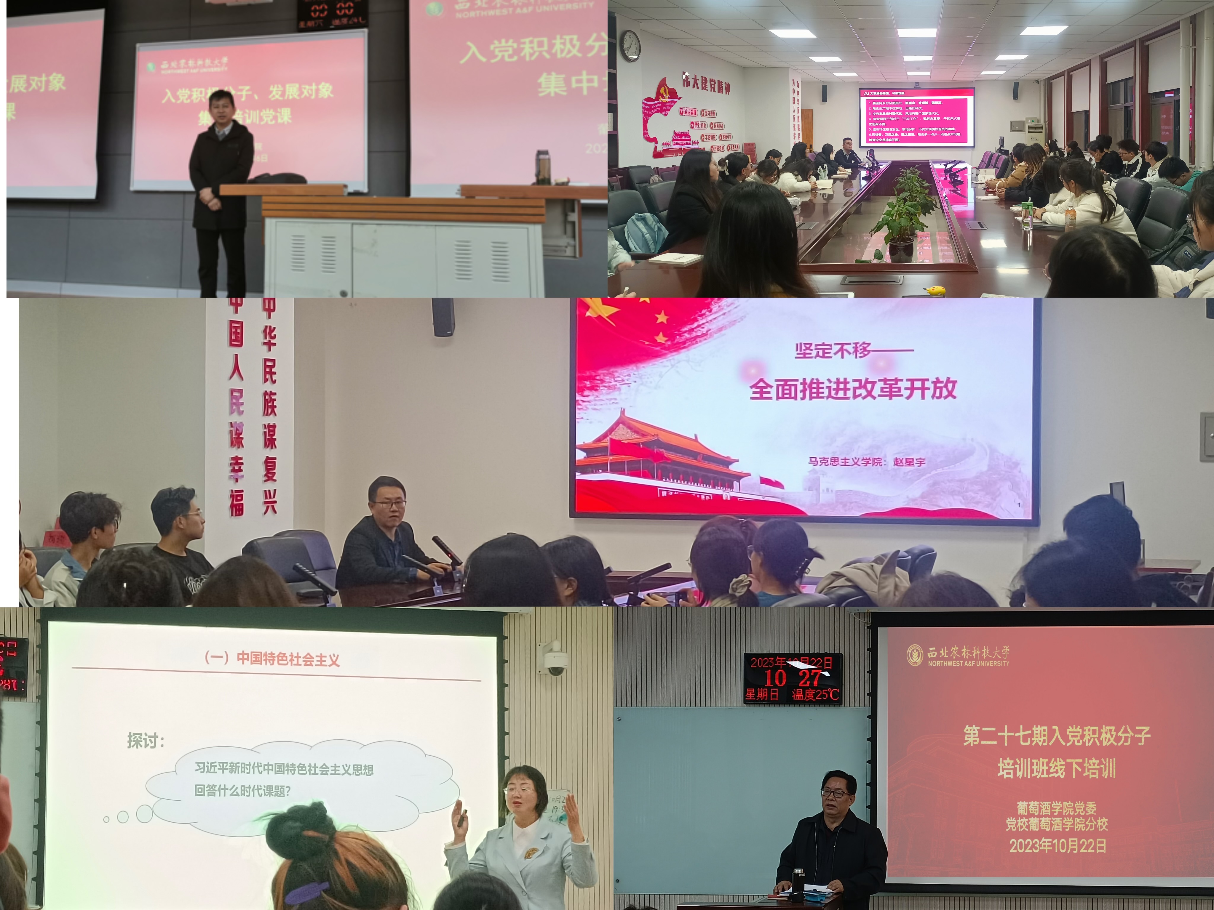 艰辛开拓、蓬勃发展、全面腾飞发展史,激励同学们秉承西农精神、讲好西农故事、奋发有为;组织前往扶眉战役纪念馆、张载祠等爱国主义基地,感悟革命理想信念,领会中华优秀传统文化中千年前爱国情怀的质朴表达。结合学员特长优势,纳入“我为师生办实事”主题活动中,开展环境美化、学业小导师、考研经验分享、新集村支教等志愿服务;形成以学生社区、田园实践、实验室为依托的“田间微学习”“楼宇微讲”“课题组微讲坛”等学习型课堂,激励全体学员传承红色精神、汲取奋斗前进之力。