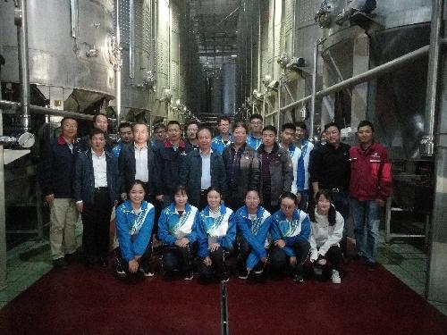 在发酵车间,陈校长详细询问了实习学生的工作岗位、工作内容、饮食起居、实习收获等情况,并与大家一起合影留念。
