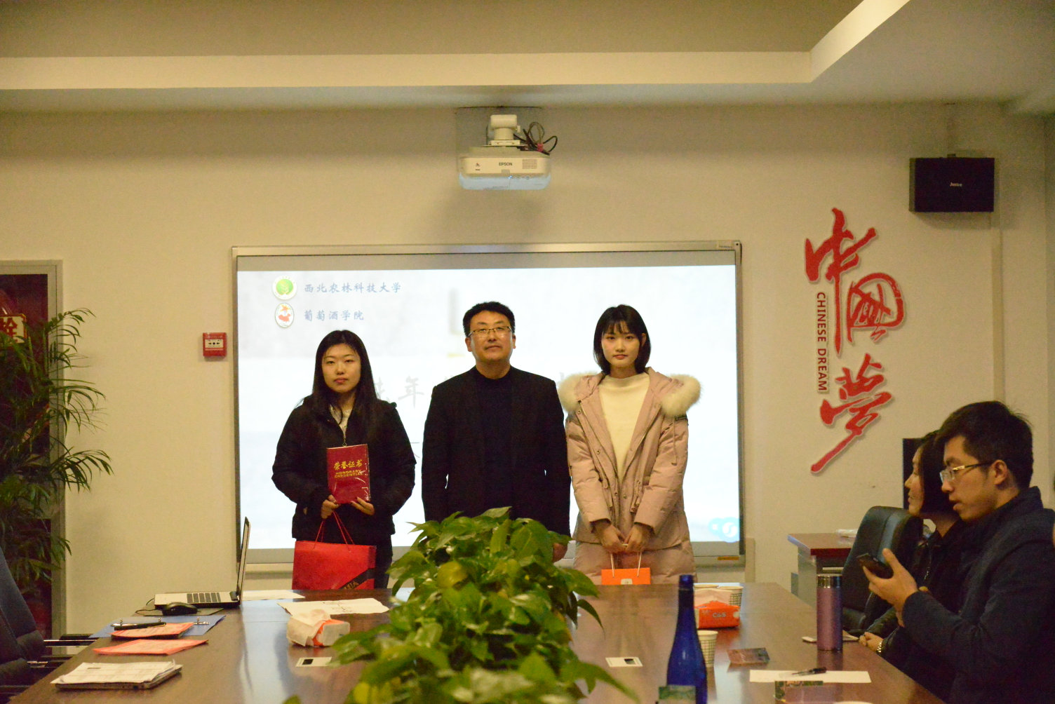 酒酒标设计大赛进行了指导,提出了很好的建议,并为为获得一等奖的队伍颁奖。