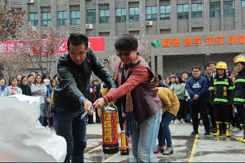 师生学习灭火器使用方法