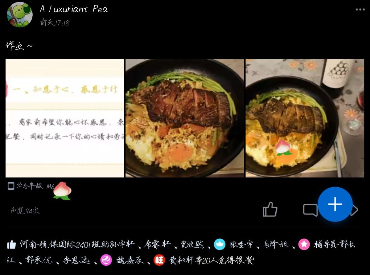 们精心策划了一系列入学作业,涵盖感恩教育、校庆祝福、生涯规划三大板块。号召新生为家人“烹饪一顿美食,品味一杯欧美伦理电影