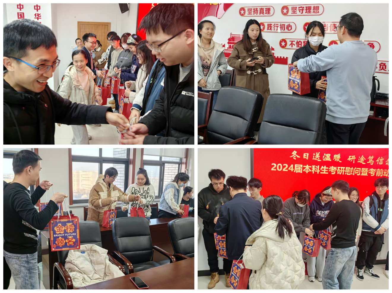 随后,毕业班班主任也为考研学子送上寄语和祝福,年级辅导员提醒同学们冬季寒冷干燥,在专心备考的同时也不要忽视安全问题,务必注意保暖防护,提高用电、财产、交通、食品等各类安全意识和防范能力,守好安全底线。