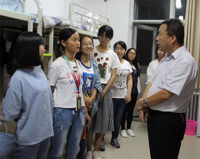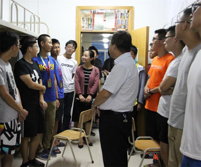 26日晚,胡俊鹏书记一行来的西区17号楼男生宿舍和15号楼女生宿舍看望新生,胡书记详细询问了新生对于大学的新感受,有什么特长,家来自哪儿,一句句亲切的关怀,让学生倍感温暖,宿舍内气氛十分融洽。胡书记嘱咐学生要处理好宿舍成员关系,尽快转变角色,调整好状态投身难得的军训锻炼,练就坚强的意志和品格,为随后的学习和奠定良好基础。新生们也争先恐后的介绍了自己报考专业的初衷,并希望通过自己的努力学好自己喜欢的专业,实现自己的大学梦想。