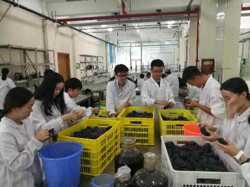 酒酿造等环节,圆满完成了校内生产实习的各项任务。