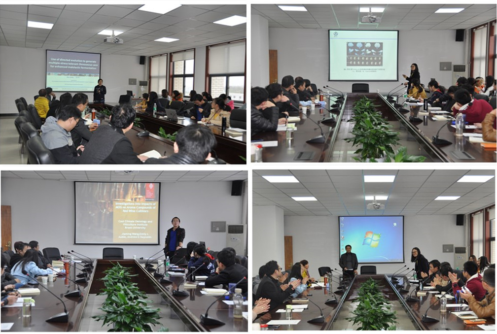 师生带来了精彩纷呈的学术报告。首先,姜娇讲了题为“Use of directed evolution to generate multiple-stress tolerant Oenococcus oeni for enhanced malolactic fermentation”的报告,她围绕实验背景、目的、方法、结果等方面进行了详细的介绍,对未来的研究方向提出了建议。王家明着重介绍了其参与建设的数学模型估测欧美伦理电影