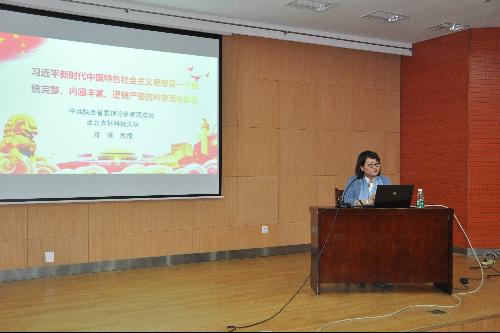 邓谨教授从“5个逻辑”、“8个明确”、“14条基本方略”等方面全面解读了习近平新时代中国特色社会主义思想。邓教授指出,习近平新时代中国特色社会主义思想是一个系统完整、内涵丰富、逻辑严密的科学理论体系,党的十九大报告的最大亮点,就是站在中国特色社会主义进入新时代的历史方位和历史起点上,坚持和发展中国特色社会主义,实现中华民族伟大复兴。邓教授强调,新时代中国特色社会主义思想,是对马克思列宁主义、毛泽东思想、邓小平理论、“三个代表”重要思想、科学发展观的继承和发展,是马克思主义中国化的最新成果,是党和人民实践经验和集体智慧的结晶,是中国特色社会主义理论体系的重要组成部分,是全党全国人民实现中华民族伟大复兴而奋斗的行动指南。