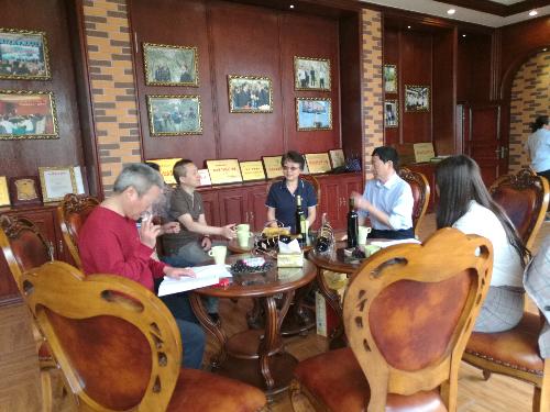 在与公司董事长何世勤、总经理曾黎黎交流中,李华教授和王华教授充分肯定了天源公司目前的发展成绩和发展思路,并就如何开发橄榄酒新产品、如何改进橄榄酒的生产流程和改进产品质量等问题进行了深入交流沟通。