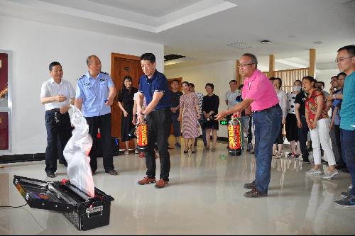 组织了灭火器的操作培训,消防科相关人员利用电子模拟灭火器,为大家进行了现场指导和培训。