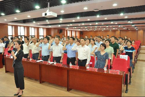 党委副书记邓亚丽同志带领预备党员面向党旗庄严宣誓,正式党员重温了入党誓词。