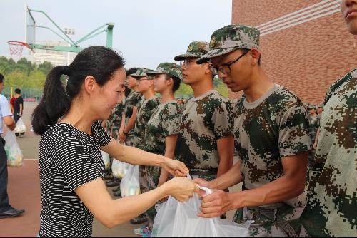 “耕土耕心,酿酒酿人”的院训精神。随后,胡俊鹏书记、房玉林院长和邓亚丽副书记为教官和同 学们送上了香甜的酸奶和新鲜水果,此时军训场上充满了温暖的笑容、善意的祝福和羞涩的感谢。